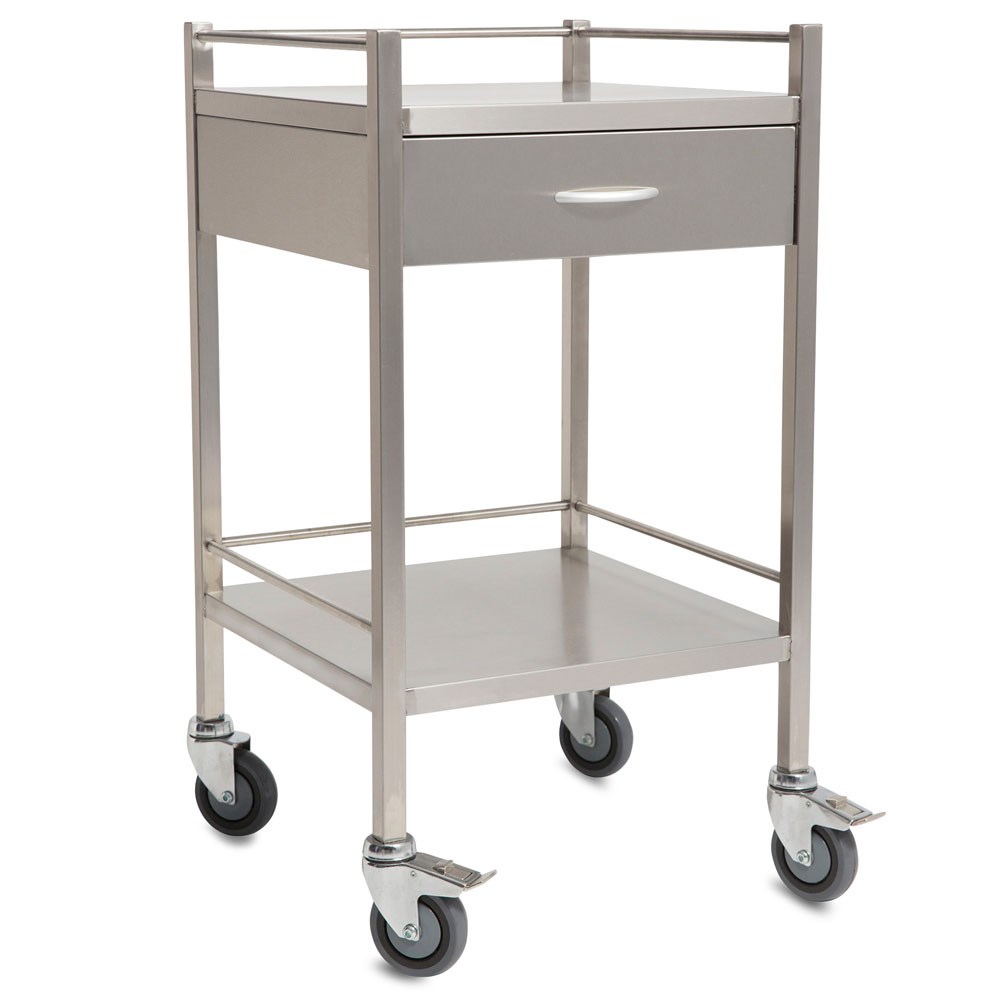 SQ Series Dressing Trolley - 75x49cm - 1 Drawer - With Rails - Stainless Steel